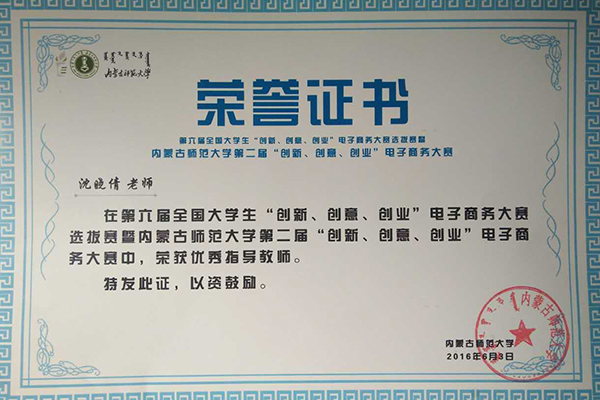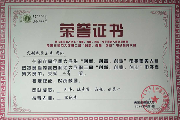 为激发大学生兴趣与潜能,培养大学生创新意识、创意思维、创业能力以及团队协同实战精神,2016年6月3日,beat365官网举行了第六届全国大学生“创新、创意、创业”电子商务大赛选拔赛暨beat365亚洲版官方网站第二届“创新、创意、创业”电子商务学科性竞赛,由我院13级环境设计专业吴伟、14级产品设计专业陈彦甫、马强和公共管理学院刘笑一组成的定制民族未来团队作品——图巴工艺美术坊(私人订制特色民族工艺品销售网站)荣获最佳创业奖和集体二等奖,指导老师沈晓倩荣获优秀指导教师。定制民族未来团队将作为学校代表队之一参加自治区级比赛。
