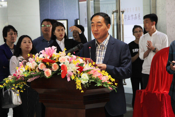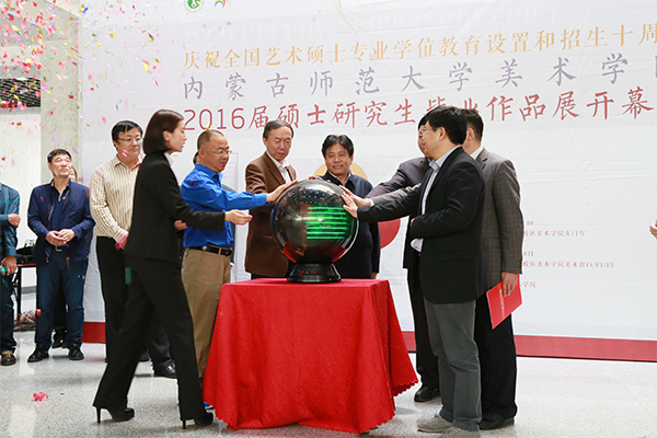 为庆祝全国艺术硕士专业学位教育设置和招生十周年,beat365亚洲版官方网站于5月18日上午举行“庆祝全国艺术硕士专业学位教育设置和招生十周年系列活动之beat365亚洲版官方网站2016届硕士研究生毕业作品展”开幕仪式。全国艺术专业学位研究生教育指导委员会副秘书长、中央音乐学院学位办副主任宋慧文教授、beat365亚洲版官方网站校长云国宏教授、校党委办公室主任布仁吉日嘎拉教授、校研究生院院长张玉柱教授等部分校领导、学校各学院领导和beat365亚洲版官方网站部分师生以及多家新闻媒体记者出席了今天开幕式并参观画展。宋慧文副秘书长、云国宏校长、张玉柱教授及导师代表奥迪教授等先后发表讲话。开幕式由beat365亚洲版官方网站院长乌力吉主持。