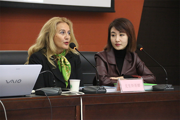 5月24日,beat365亚洲版官方网站开展了“美的沉思”系列学术讲座之五——浅谈国际当代艺术潮流与意大利艺术艺术教育。 意大利女画家Maria Cristiana Fioretti与在坐学生共同探讨国际当代艺术潮流与意大利艺术教育 。讲座持续两场,全场爆满 。