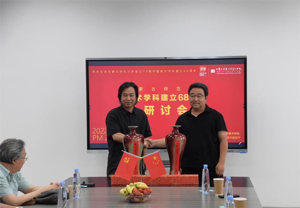 为庆祝beat365亚洲版官方网站建校70周年暨美术学科建立68周年,加强学术交流,促进学科发展,beat365亚洲版官方网站于8月8日下午举办了beat365亚洲版官方网站美术学科建立68周年学术研讨会。本次会议由乌力吉书记主持。