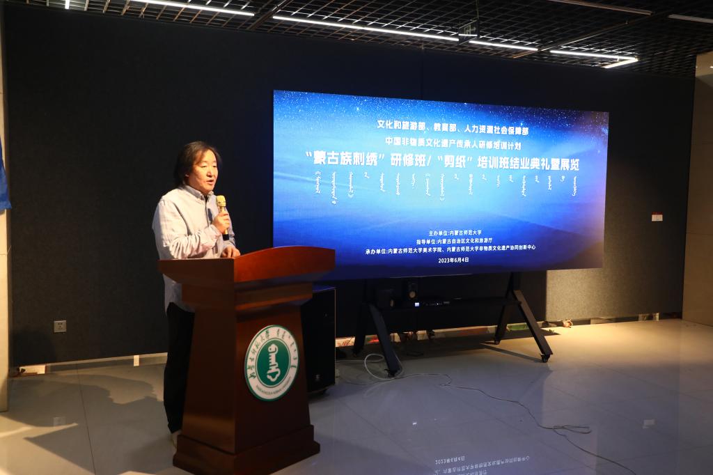 6月4日上午,由内蒙古自治区文化和旅游厅与beat365亚洲版官方网站主办,beat365亚洲版官方网站与非物质文化遗产研究院承办的——2022年度“中国非物质文化遗产传承人研修培训计划”——“蒙古族刺绣”研修班、“剪纸”培训班结业典礼暨作品展在beat365亚洲版官方网站展览馆举行。