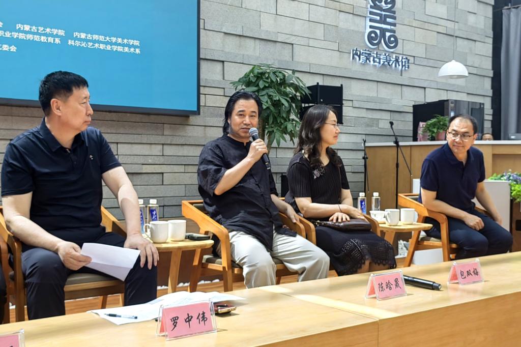 内蒙古美术家协会版画艺术委员会主任罗中伟主持研讨会,介绍来宾,并就此次研讨会主题“内蒙古版画的传承与发展”展开研讨。