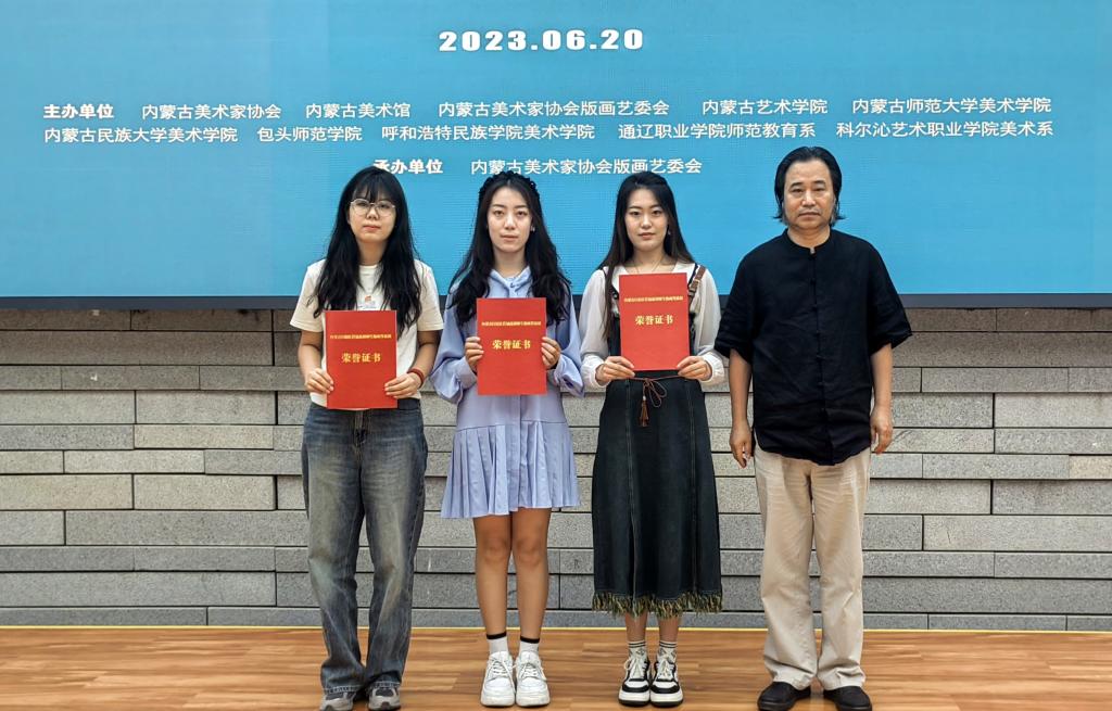 6月20日上午,由内蒙古美术家协会、内蒙古美术馆、内蒙古美术家协会版画艺委会、beat365亚洲版官方网站等共同主办的“内蒙古自治区首届高校师生版画作品展”在内蒙古美术馆展出,版画系师生共26件入展,其中荣获一等奖1名,二等奖2名,三等奖3名,优秀奖4名。展览紧扣时代主题,将中国民族传统文化与版画形式有机结合,彰显了内蒙古当代版画创作的多元性和后备力量的崛起。