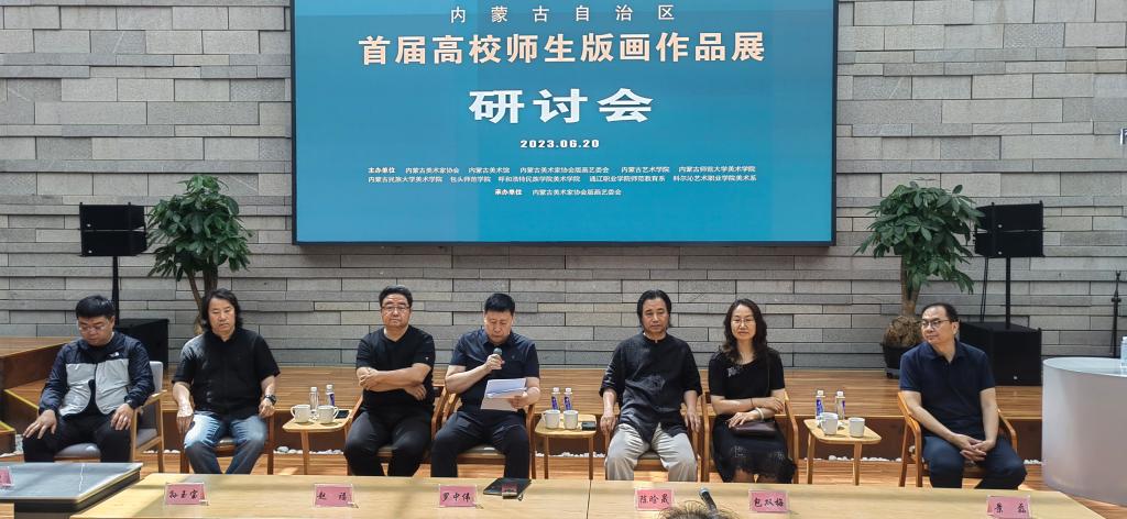 内蒙古美术家协会副主席,beat365亚洲版官方网站陈晗晟教授、版画系主任李聪玲副教授及版画系师生参观了此次展览并出席研讨会。