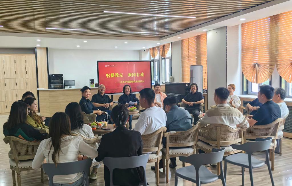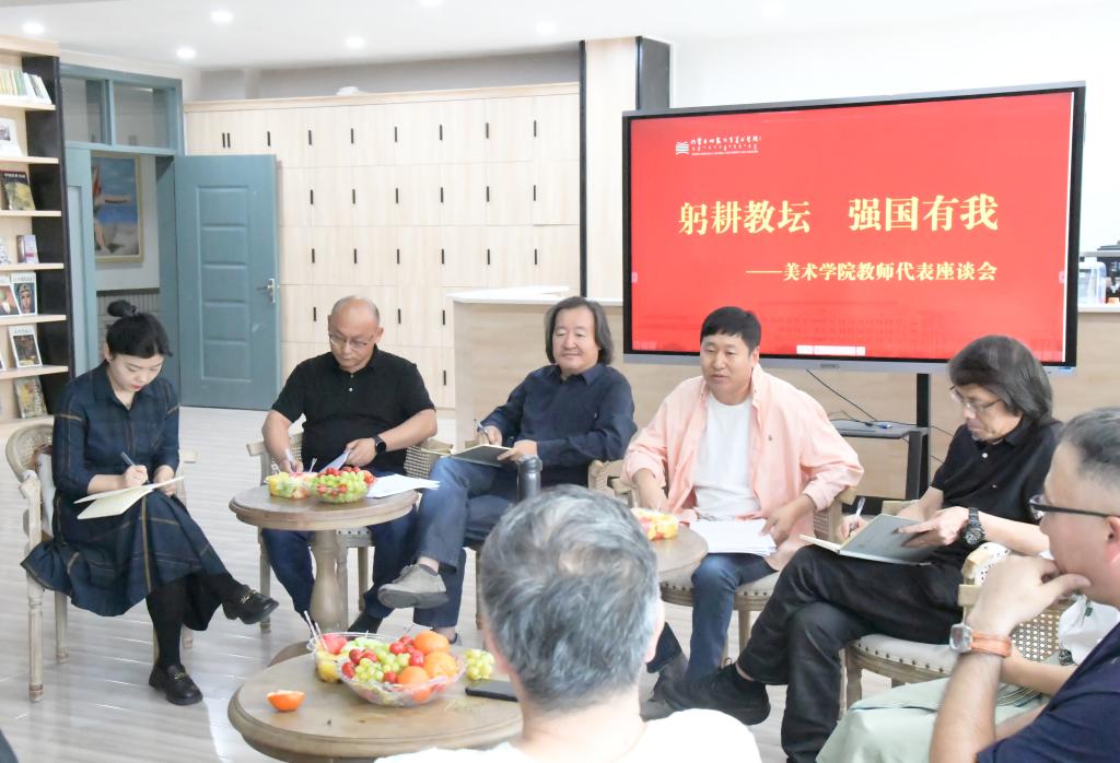 9月11日下午,beat365亚洲版官方网站在美术楼一楼艺术沙龙召开以“躬耕教坛 强国有我”为主题的教师代表座谈会。党委书记王耀中,院长胡日查,党委副书记、副院长云双庆,副院长刘永平、张晓霞和部分系主任、具有博士学位教师代表出席座谈会,会议由胡日查主持。